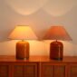 La struttura in metallo ottonato conferisce ai candelabri una lucentezza calda e sofisticata, mentre la base in onice aggiunge un tocco naturale e senza tempo. Le venature uniche dell’onice rendono ogni pezzo diverso dall’altro, esaltando l’unicità di questa coppia.