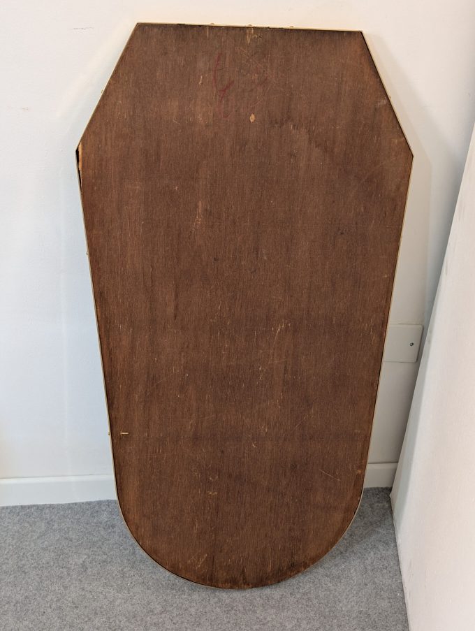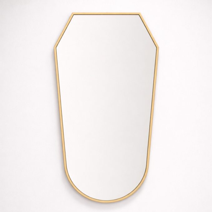 Thanks to its proportions and versatility, this mirror is ideal in an entryway, above a console table, in a bedroom, or in an elegant bathroom. Its shield shape lends vertical rhythm and distinction to the space, making it suitable for both Midcentury Modern interiors and more sophisticated and eclectic settings.