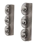 Il supporto e il rosone in ottone patinato offrono un contrasto caldo e materico alla leggerezza del vetro, esaltando l’aspetto scultoreo della composizione.