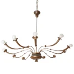 Lampadario sospeso attribuibile ad Arteluce, databile tra gli anni ’50 e ’60, che unisce una robusta struttura in ottone massiccio con quattro elementi portalampada in alluminio verniciato nei toni pastello. Un ampio disco-paradisco in alluminio, di 50 cm di diametro, diffonde la luce verso il basso e incornicia quattro coni invertiti che ospitano le lampadine, creando un’elegante coreografia di luci e ombre. La finitura conserva la patina originale, con leggere tracce di ossidazione e usura, testimonianza autentica del suo passato vintage. Con un’altezza totale di 90 cm, il lampadario si presta a valorizzare ingressi, soggiorni e sale da pranzo, aggiungendo un tocco di fascino mid-century ai vostri ambienti.